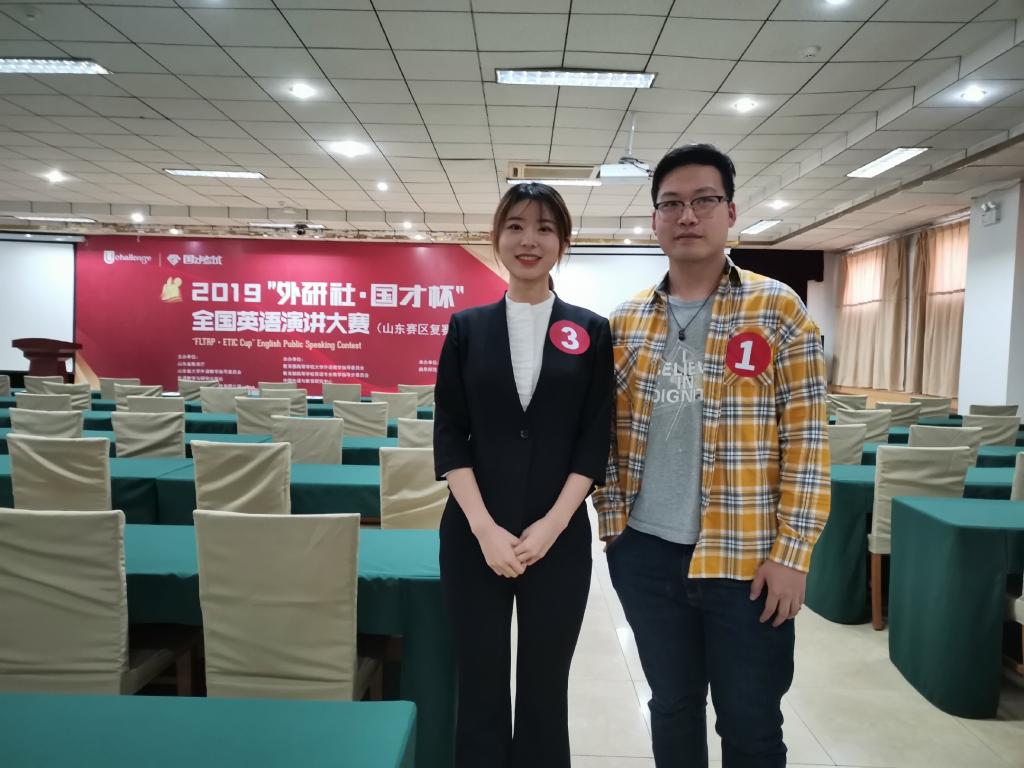 本次山东省复赛吸引了来自山东大学、中国海洋大学、中国石油大学等几十个院校的136名选手参赛。比赛共分三个阶段,第一阶段为定题演讲+评委提问,公司两位选手发音标准、语言流利、立意新颖、主旨突出,评委提问环节反应敏捷、回答巧妙,受到评委和观众的一致好评。因此,在此阶段非英语专业70选9和英语专业66选9的激烈竞争中,两位选手相继胜出,双双进入第二阶段。大赛的后两个阶段为即兴演讲+评委提问+拓展演讲,不分专业,18名选手同台比拼。即使比赛进入到白热化阶段,公司两位选手依旧沉着冷静、从容自信,给观众留下深刻的印象。经过激烈比拼,最终刘毅获得一等奖,贾逸菲获得二等奖,取得令人满意的好成绩。