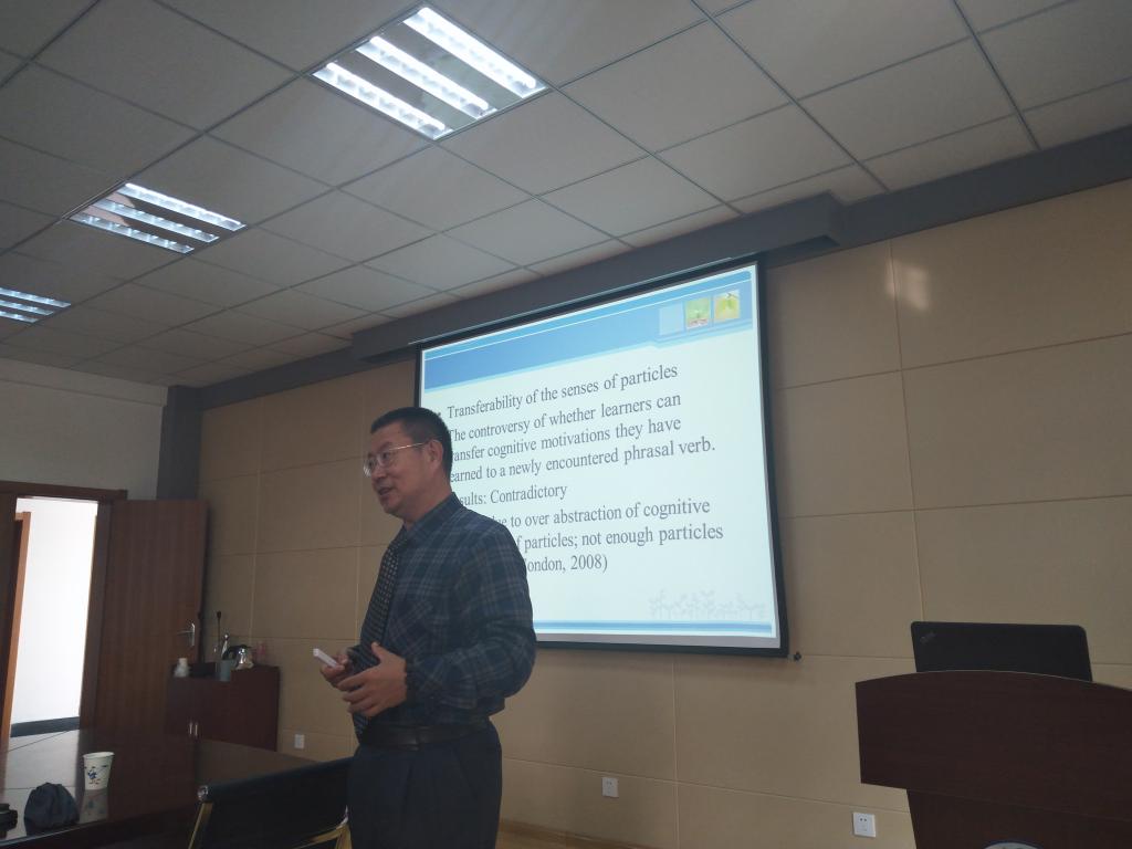 10月28日下午,山东大学太阳成集团tyc33455cc博士生导师刘振前教授做客公司研究生论坛,为大家做了《认知语言学在外语教学中的应用》专题讲座。讲座由经理尹洪山主持,副经理吕耀中、康宁与部分教师和研究生聆听了讲座。