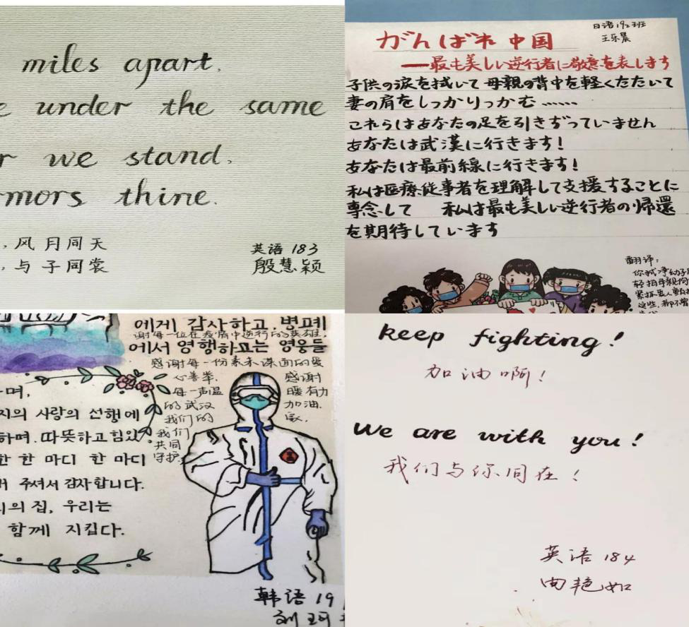 太阳成集团tyc33455cc发起了“抗疫之战,‘语’你在一起”书写活动,为中国加油,向奋战在一线的最美逆行者致敬。
