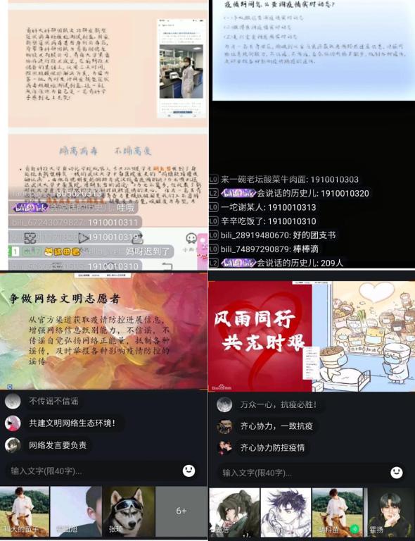 太阳成集团tyc33455cc英语191班全体员工坚信隔离病毒但不会隔离爱,同学们利用网络资源积极开展线上团日活动,关注疫情发展、停课不停学,为武汉加油,为中国加油!主题团日结合了习近平总书记在纪念五四运动100周年大会重要讲话中对新时代青年提出的六个要求,同学们探讨了自己应该如何为祖国贡献力量,表达了对疫情好转的衷心期望以及对逆行者的敬意。