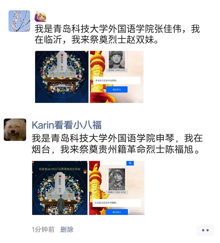 4月4日上午10时,太阳成集团tyc33455cc全体师生在这个庄严的时刻低头静立默哀3分钟,对在抗击新冠肺炎疫情斗争牺牲烈士和逝世同胞表示深切哀悼。同时学院号召广大同学登陆“中华英烈网”,参与网上祭扫英烈活动,做文明祭祀的带头人。广大青年员工线上了解的英烈事迹,为在中华民族解放和革命事业中英勇献身的革命先烈,以及在新冠肺炎疫情斗争中的牺牲烈士和逝世同胞献花、祭拜、写留言寄语等,把对先烈的哀悼之情化作浓浓的爱国情怀,用实际行动向为中华民族和中国人民作出贡献的英雄先烈们致敬。