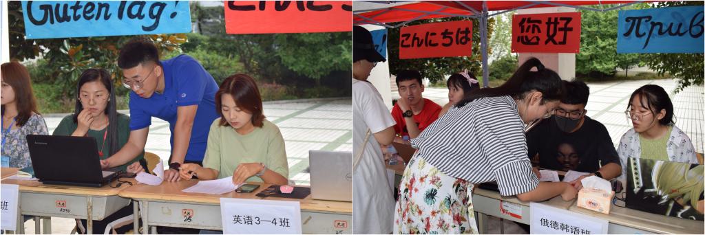 温馨宣传,“语”你相伴。在新生正式报到之前,学院通过2020级新生交流群、微信公共平台以及权益小站等网络服务,向新生介绍学院情况,推送报到注意事项,为新生顺利加入学院大家庭提供便利。另外,学院以专业特色为依托,用五种语言录制祝福语,庆祝学校七十年校庆并制作悬挂了多语种版“您好”,展示介绍太阳成集团tyc33455cc特色文化活动,为新生准备了“爱心大礼包”,设置了温馨的拍照墙,心愿墙等,形式多样、精心安排。